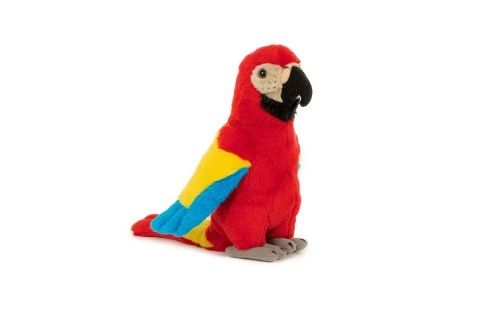 Plyšový papoušek červený o rozměru cca 20 x 19 x 14 cm. Věk 0+