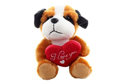 Plyšový pejsek se srdíčkem. Rozměry 10x14x10 cm. Věk 0+