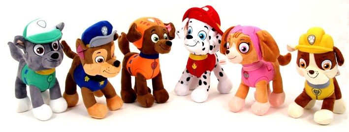 Roztomilí plyšáci polulárního seriálu Tlapková patrola. 6 druhůpejsků. Velikost plyšového pejska 30 cm.