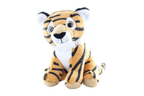 Plyšový tygr o rozměru cca 16 x 18 x 15 cm. Věk 0+