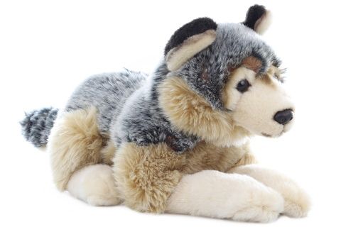 Plyšový vlk o velikosti cca 40 x 20 x 11 cm. Věk 0+