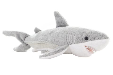 Plyšový žralok o velikosti cca 26 x 8 x 15 cm. Věk 0+