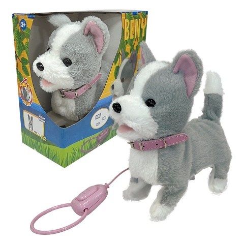 Pejsek s ovládáním na vodítku, může se pohybovat dopředu, nebo zůstat stát , hýbat hlavou a ocáskem a štěkat - Doporučený věk 3+ - Baterie: 4x AA 1,5V, Baterie jsou součástí hračky – pouze pro zkušební provoz.