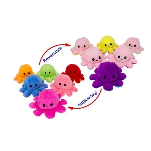 Plyšová chobotnička Flip Flop – oboustranná. Velikost 20 cm. V různých barvách.