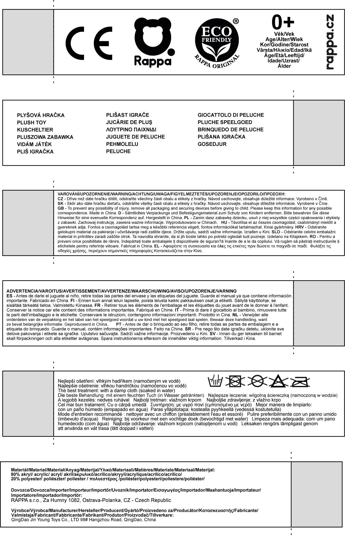 Nádherná plyšová kočka o délce 30 cm. Kočka je vyrobena z vysoce kvalitní plyše a díky tomu vypadá jako živá a je tak součástí exkluzivní kolekce plyšových hraček RAPPA. Co to vlastně ECO-FRIENDLY znamená? Výplň plyšové hračky je vyrobena z recyklovaných PET lahví. Tento materiál je zcela bezpečný, na omak nerozeznatelný od standartní výplně a plně atestovaný pro bezpečnost i těch nejmenších. Rozhodli jsme se jít zelenou cestou co nejméně zatěžující životní prostředí- cestou ECO-FRIENDLY.
