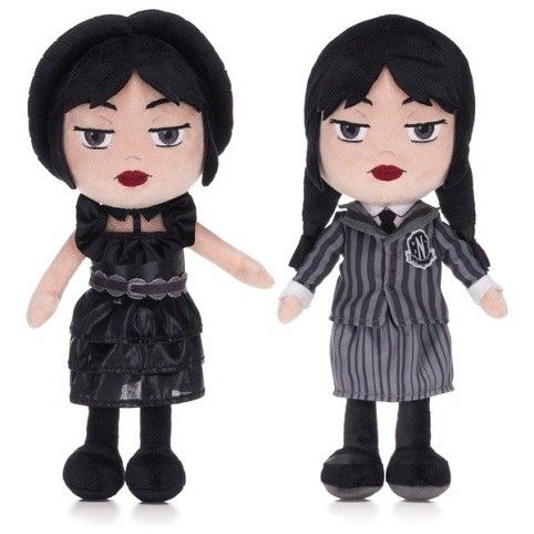 Jak je vidět v oblíbeném televizním seriálu, tyto 32cm plyšové panenky Wednesday Addams představují postavu ve dvou jejích ikonických oblecích. Vynikajících detailů si všimnete jak na panence Wednesday v černé a šedé školní uniformě Nevermore, tak na panence v jejích ikonických černých šatech, které měla na sobě v Nevermore Rave’N Dance.Vyrobeno ze super měkkého plyšového materiálu.