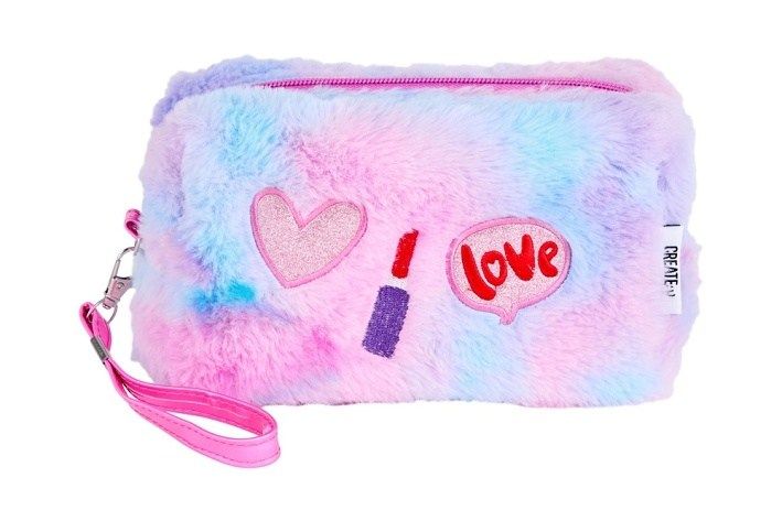 Udrž svůj make-up uspořádaný a zároveň stylový s PLYŠOVOU TAŠTIČKOU NA MAKE-UP od Create it! Tato roztomilá zipová taštička má měkký plyšový povrch v magických duhových barvách a je zdobená veselými motivy: srdíčkem, rtěnkou a ikonou lásky. Je ideální velikosti pro uložení všech oblíbených kosmetických produktů, ať už jsi doma, nebo na cestách.Hravý a zářivý design z ní činí nezbytný doplněk pro mladé nadšenkyně make-upu, které se rády nebojí být odvážné a kreativní. S kosmetickou taštičkou od Create it! budou tvoje kosmetické poklady vždy v bezpečí a stylově uložené.