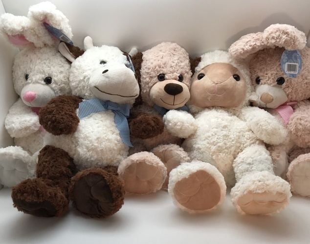 Plyšový zvířátka různé druhy – králík, pejsek, ovečka a kravička – velikost 60 cm. Vyrobeno z kvalitní plyše.