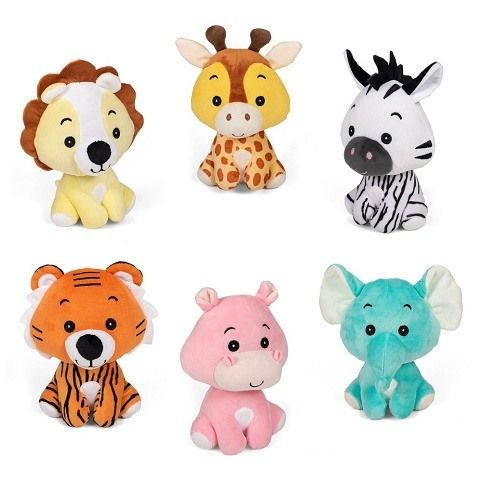 Plyšové zvířátko chrastící – uvnitř zvířátka je chastítko. Určeno pro nejmenší děti. Velikost zvířátka je 18 cm. 6 druhů – lev, žírafa, zebra, tygr, chroch a slon. Vyrobeno z kvalitního a jemného plyše.