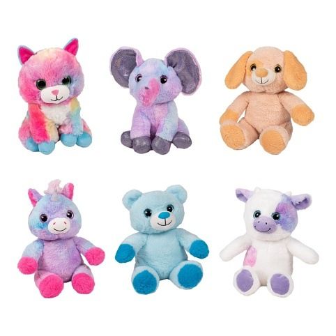 Roztomilá plyšová zvířátka s třpytivýma očima – v šesti variantách – pejsek, slon, medvěd, jednorožec, kravička a kočička. Vyrobeno z jemného a kvalitního plyše. Velisot zvířátka 23 cm.