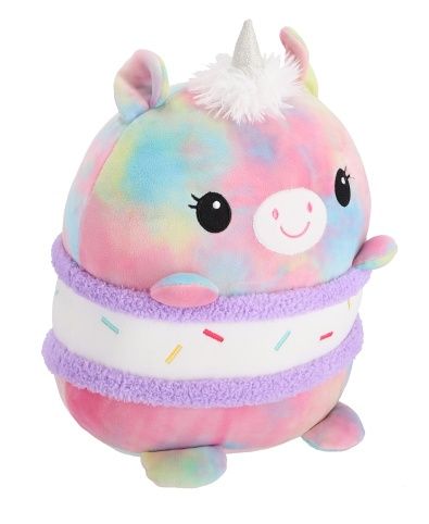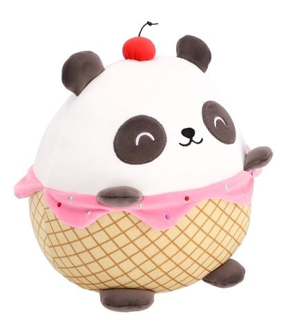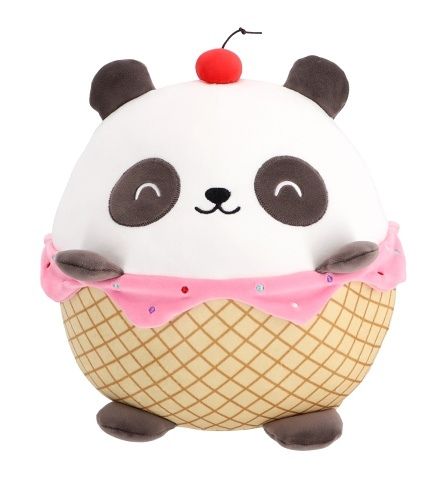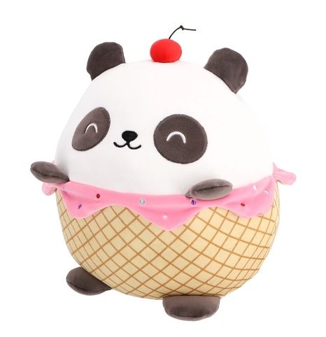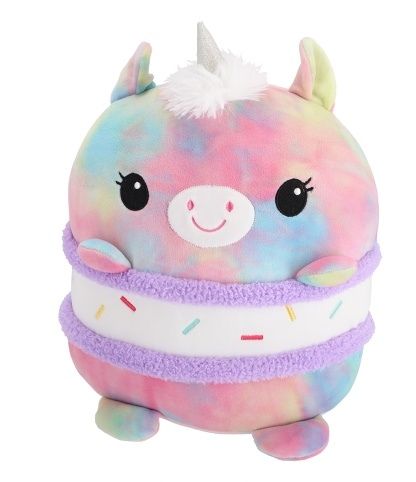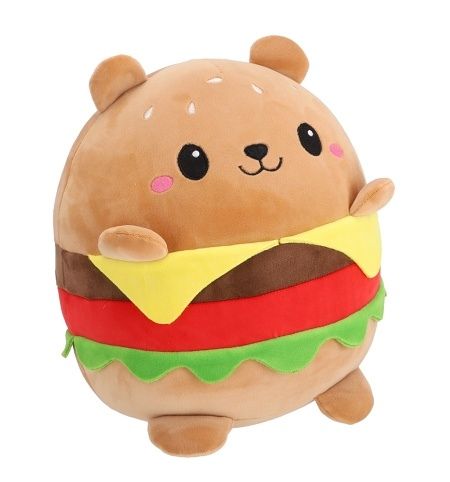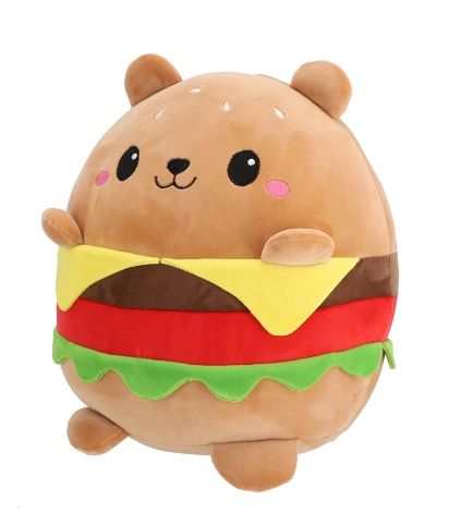Plyšové jídlo ve tvaru zvířátka. Velikost 30 cm, 3 různé verze – makaranový jednorožec, hamburgerový medvěd a zmrzlinová panda.