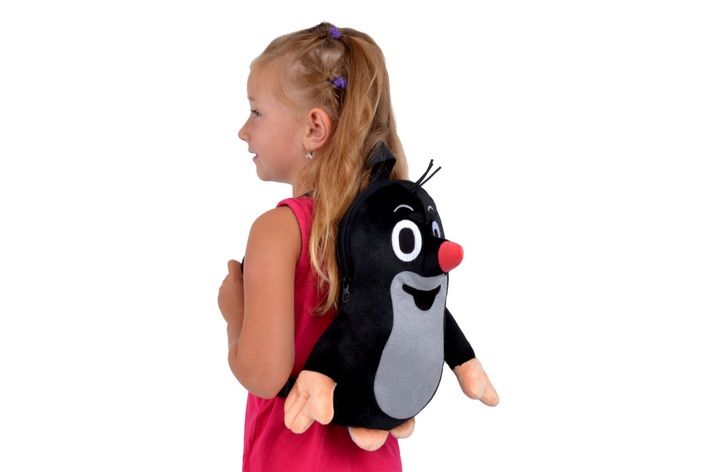 Plyšový batůžek ve tvaru Krtečka, uzavírání na zip, nastavitelné popruhy. Objem cca 1,5 litru. Nosnost 3 kg.