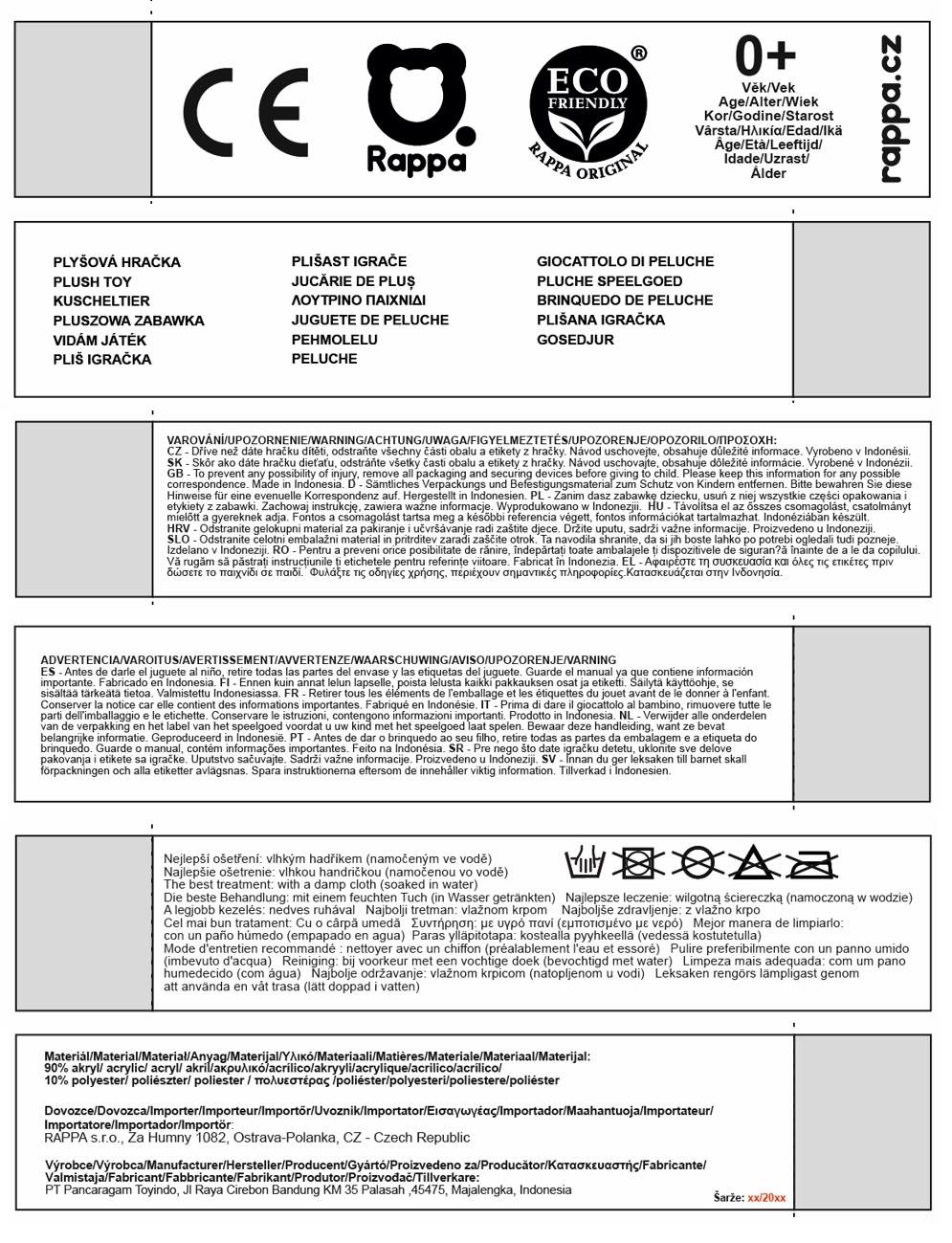 Plyšový chameleon měří 30 cm a díky těm nejkvalitnějším materiálům se řadí do Exkluzivní kolekce plyšových hraček značky Rappa. Díky ručnímu zpracování každého kusu navíc vypadá jako živý. Proč označení ECO-FRIENDLY? Rappa si je vědoma všech dopadů na životního prostředí, zaměřuje se na udržitelnost a omezení používání plastů na minimum. Proto je výplň hraček vyrobena z recyklovaných materiálů, zejména PET lahví. Ta je však zcela nezávadná a vhodná i pro děti od narození. FUN FACT: Věděli jste, že chameleoni mění barvu nejen pro maskování, ale hlavně kvůli komunikaci, regulaci teploty a díky speciálním nanokrystalům v kůži, které odrážejí různé vlnové délky světla?