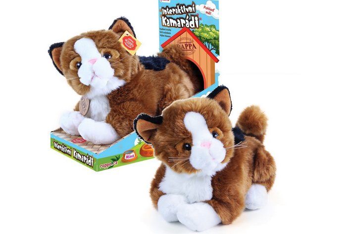 Roztomilí kamarádi (kočka Mína a pes Bobík). Reagují na pohlazení - začnou vydávat realistické zvuky, zároveň pohybují hlavou a ocáskem. Unikátní plyšoví kamarádi ve velikosti 25 cm budou úžasným dárkem. Vyžaduje 3 ks baterií typu AA, které jsou součástí.