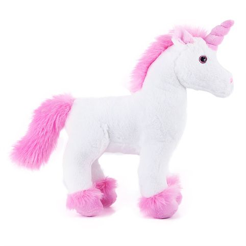 Roztomilý plyšový bílý jednorožec s krásnou růžovou hřívou a rohem ve velikosti 32 cm. Je vyroben z kvalitní jemné plyše. Tento plyšový kousek je ideálním dárkem!