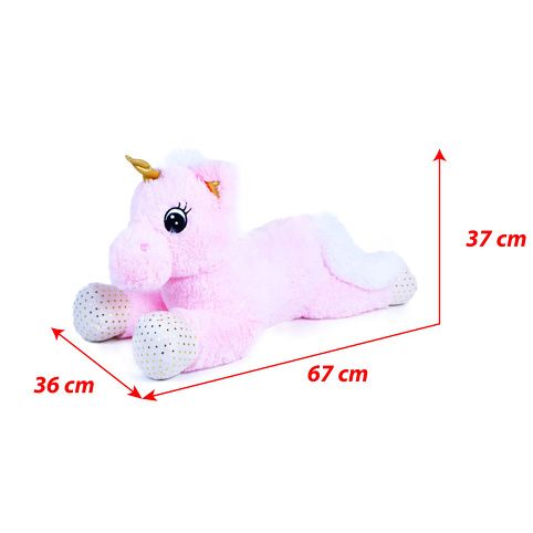 Nádherný plyšový jednorožec ve velikosti 70 cm je vyroben z kvalitní jemné plyše. Jednorožec je v růžové barvě, má zlatý roh i tlapky, hříva a ocas jsou sněhově bílé. Ideální dárek pro malé i velké!
