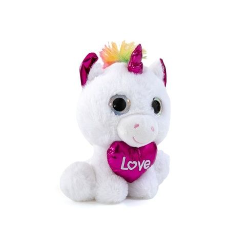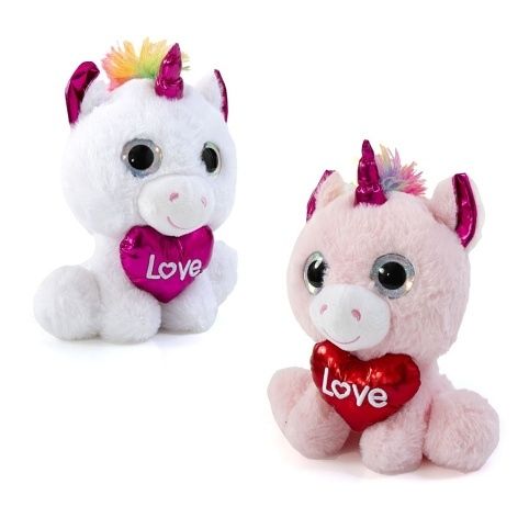 Plyšový jednorožec se srdíčkem 24 cm – 2 barvy – růzový a bílý. Velikost 24 cm