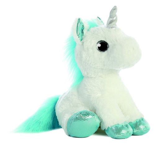 Plyšový jednorožec sedící bílo/modro/třpytivý 30 cm