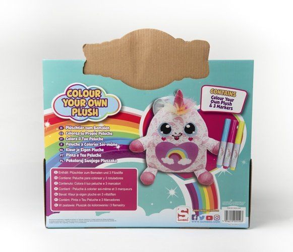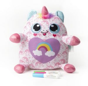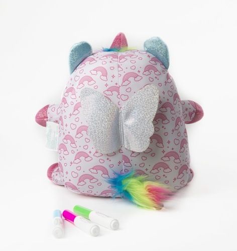 Plyšový jednorožec má načechranou hřívu připravenou ke kartáčování, třpytivý magický roh a třpytivá křídla. Sada obsahuje plyšového jednorožce a 3× fixy.