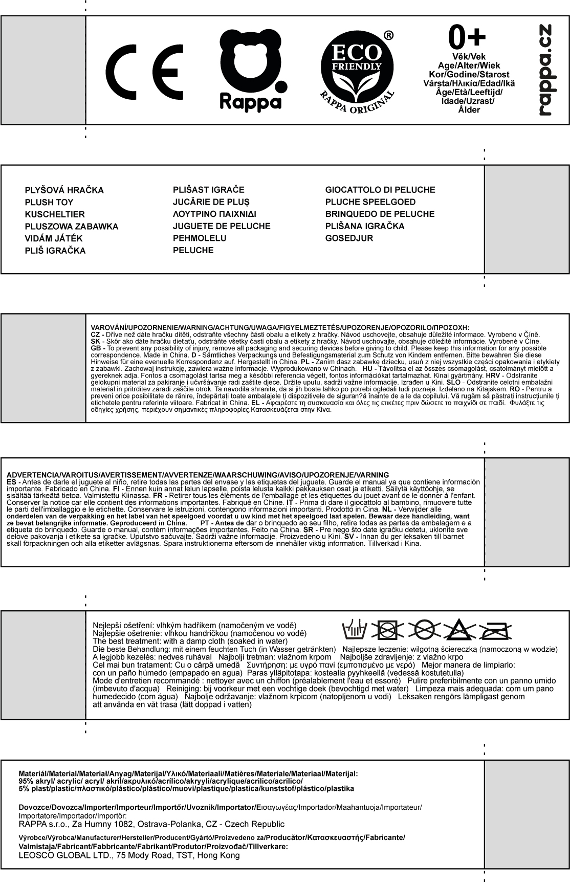 Plyšový kohout ve velikosti 33 cm je vyroben z vysoce kvalitní plyše a je tak součástí exkluzivní kolekce plyšových hraček RAPPA. Co to vlastně ECO-FRIENDLY znamená? Výplň plyšové hračky je vyrobena z recyklovaných PET lahví. Tento materiál je zcela bezpečný, na omak nerozeznatelný od standartní výplně a plně atestovaný pro bezpečnost i těch nejmenších. Rozhodli jsme se jít zelenou cestou co nejméně zatěžující životní prostředí- cestou ECO-FRIENDLY.