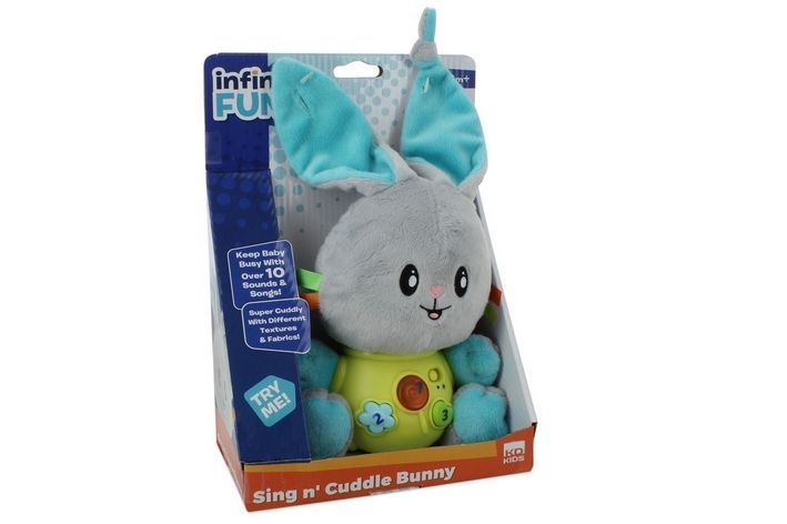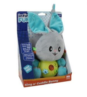 Plyšový králíček udržuje děťátko v pocitu bezpečí a rozvíjí jeho zvědavost. Zároveň rozvíjí smyslové vnímaní dítěte díky různorodému materiálu králíčka (tvrdý a měkký dotyk, lesklé stuhy, rozdílná struktura). Králíček nabízí zpívání různých písní, populární melodie, zábavné zvuky a světelné efekty. Snadné uchopení. Možnost pověsit králíčka nad postýlku, autosedačku atd. pomocí uvázání uší. Obsahuje 3 tlačítka s množstvím zábavných zvuků.