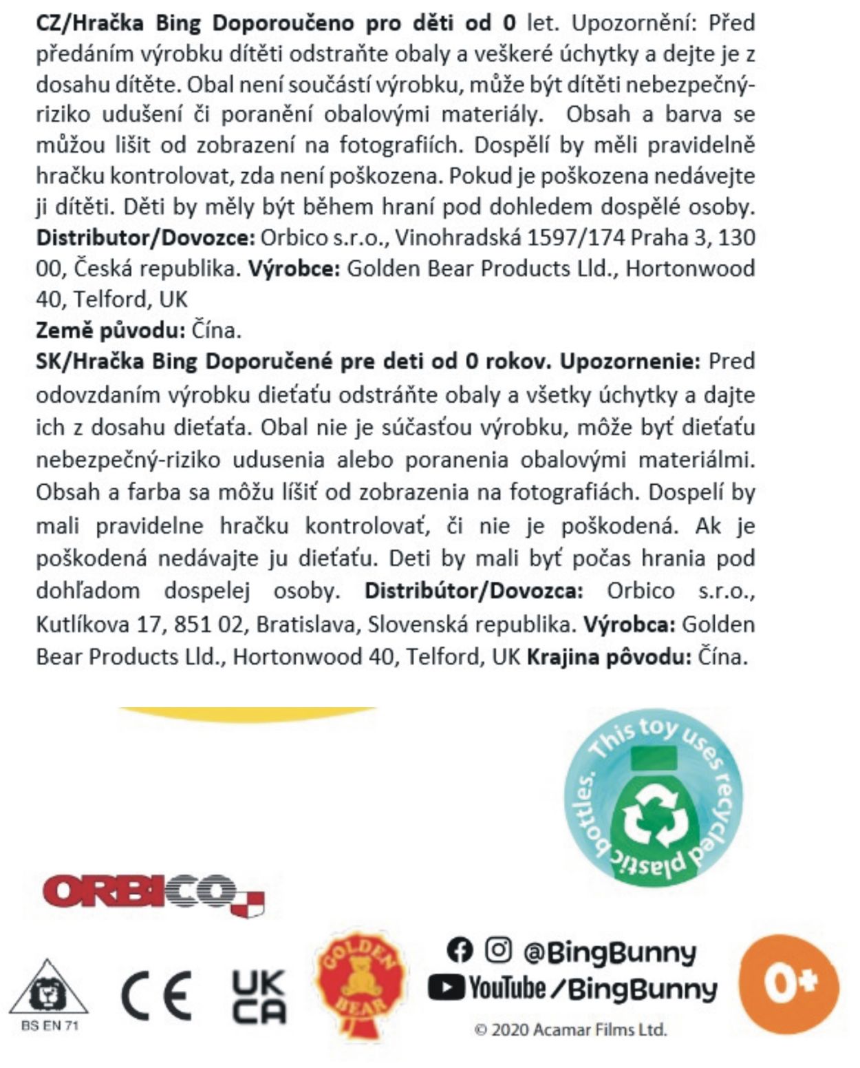 Hlavní postava animovaného seriálu v jumbo verzi. Králíček Bing se jistě rychle stane jedním z nejoblíbenějších mazlíčků vašeho dítěte. Tento plyšový králík je díky měkkému, na dotek příjemnému materiálu a vyšívané tváři bezpečný i pro nejmenší děti. Bude to skutečná ozdoba každého dětského pokoje. Králík měří 43cm. Vhodné pro děti od 10 měsíců.