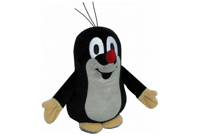 Plyšový Krteček. Ve spodní části je naplněn fazolkami, které stimulují dětský cit a rozvíjejí hmatové schopnosti dítěte.