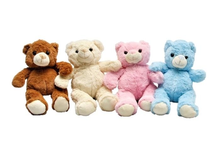 Plyšový medvěd sedící ve čtyřech barevných provedeních –