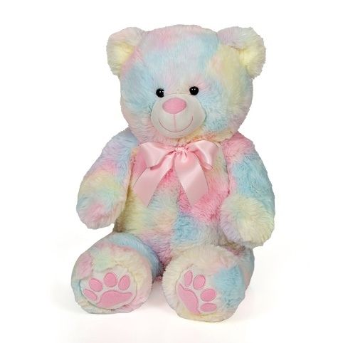 Plyšový medvěd sedící duhový s růžovou mašlí 60 cm