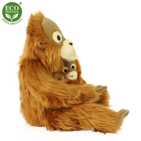 Plyšový orangutan o velikosti 28 cm je ručně ušitý z vysoce kvalitní, jemné plyše, a díky tomu vypadá jako živý. Součástí je mláďátko ve velikosti cca 15 cm, které se dá po odstřižení oddělit. Je součástí exkluzivní kolekce plyšových hraček RAPPA. Rozhodli jsme se jít zelenou cestou co nejméně zatěžující životní prostředí - cestou ECO-FRIENDLY. Co to vlastně ECO-FRIENDLY znamená? Výplň plyšové hračky je vyrobena z recyklovaných PET lahví. Tento materiál je zcela bezpečný, na omak nerozeznatelný od standardní výplně a plně atestovaný pro bezpečnost i těch nejmenších.