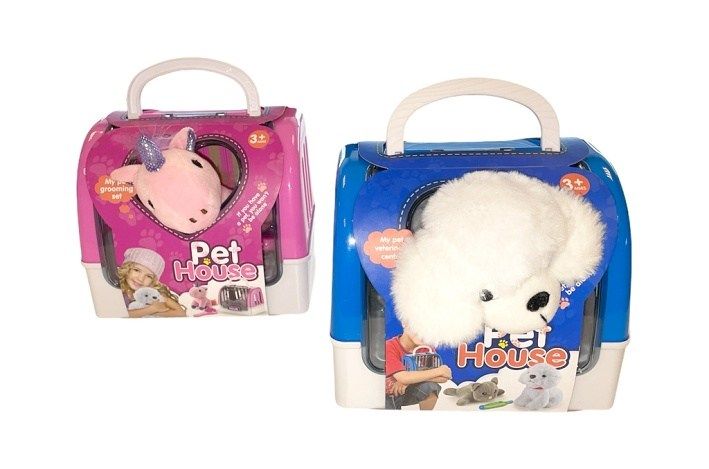 Plyšový pejsek/jednorožec v přepravce