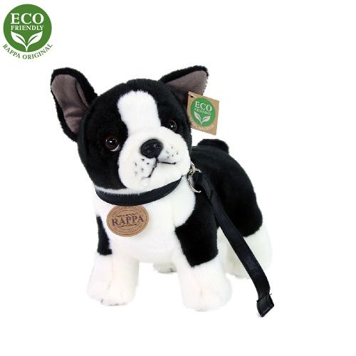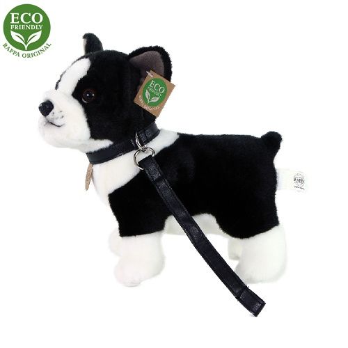 Plyšový pes francouzský buldoček s vodítkem stojící, 23 cm, ECO-FRIENDLY