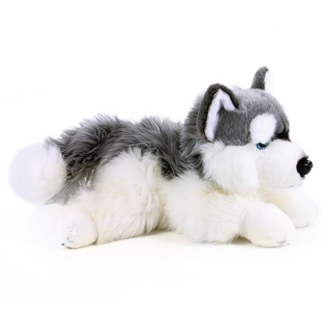 Rozkošný plyšový pes Husky nesmí chybět v žádném dětském pokojíčku! Tento ležící pes je vyroben z exkluzivní, velmi kvalitní plyše a jeho délka je cca 30 cm. Tento senzační plyšový kousek je ideální i jako dárek!