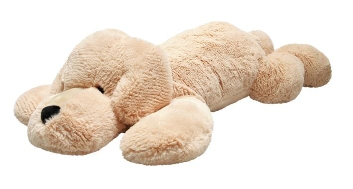 Plyšový ležící pes o velikosti 100 cm. Vyrobeno
