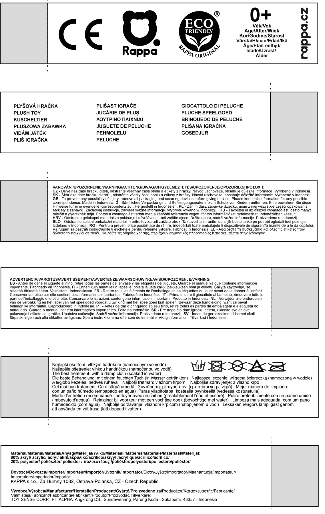 Plyšový pes mops ve velikosti 18 cm je ručně ušitý z vysoce kvalitní, jemné plyše, a díky tomu vypadá jako živý. Je vítaným společníkem nejen do každého dětského pokojíčku. Je součástí exkluzivní kolekce plyšových hraček RAPPA. Rozhodli jsme se jít zelenou cestou co nejméně zatěžující životní prostředí - cestou ECO-FRIENDLY. Co to vlastně ECO-FRIENDLY znamená? Výplň plyšové hračky je vyrobena z recyklovaných PET lahví. Tento materiál je zcela bezpečný, na omak nerozeznatelný od standardní výplně a plně atestovaný pro bezpečnost i těch nejmenších.
