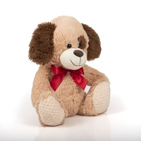 Plyšový pes béžový s červenou mašlí. Velikost 38 cm