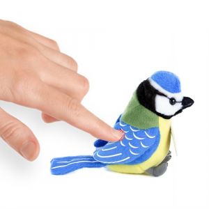 Plyšový pták sýkora modřinka se zvukem, 11 cm