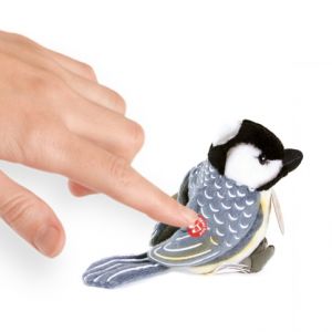 Plyšový pták sýkora uhelníček se zvukem, 11 cm