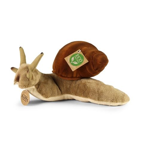 Plyšový šnek/hlemýžď měří 24 cm a díky těm nejkvalitnějším materiálům se řadí do Exkluzivní kolekce plyšových hraček značky Rappa. Díky ručnímu zpracování každého kusu navíc vypadá jako živý. Proč označení ECO-FRIENDLY? Rappa si je vědoma všech dopadů na životního prostředí, zaměřuje se na udržitelnost a omezení používání plastů na minimum. Proto je výplň hraček vyrobena z recyklovaných materiálů, zejména PET lahví. Ta je však zcela nezávadná a vhodná i pro děti od narození. FUN FACT: Věděli jste, že šnečí jazyk, tzv. radula, je pokryt tisíci drobných zoubků a tímto „struhadlem“ si šnek škrábe potravu, aby ji mohl sníst?