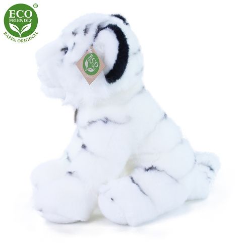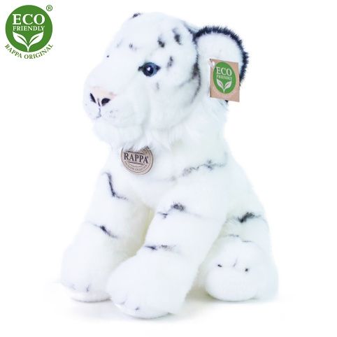 Rozkošný plyšový tygr bílý nesmí chybět ve tvé sbírce zvířatek! Tygr o velikosti 30 cm je vyroben z exkluzivní, velmi kvalitní plyše. Tento senzační plyšový kousek je ideální i jako dárek! Plyšový tygr bílý je součástí exkluzivní kolekce plyšových hraček RAPPA. Rozhodli jsme se jít zelenou cestou co nejméně zatěžující životní prostředí - cestou ECO-FRIENDLY. Co to vlastně ECO-FRIENDLY znamená? Výplň plyšové hračky je vyrobena z recyklovaných PET lahví. Tento materiál je zcela bezpečný, na omak nerozeznatelný od standardní výplně a plně atestovaný pro bezpečnost i těch nejmenších.