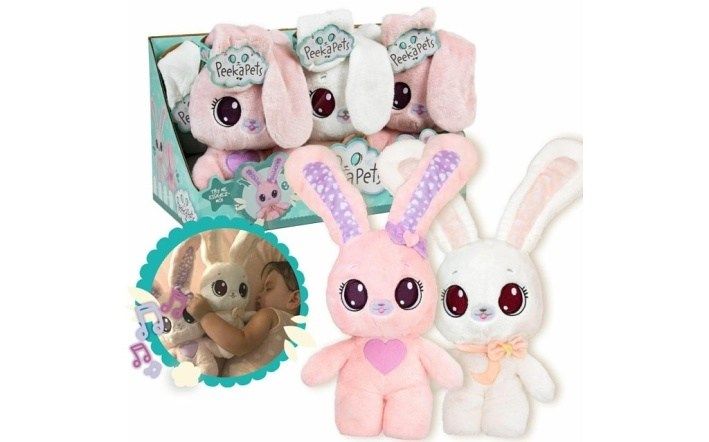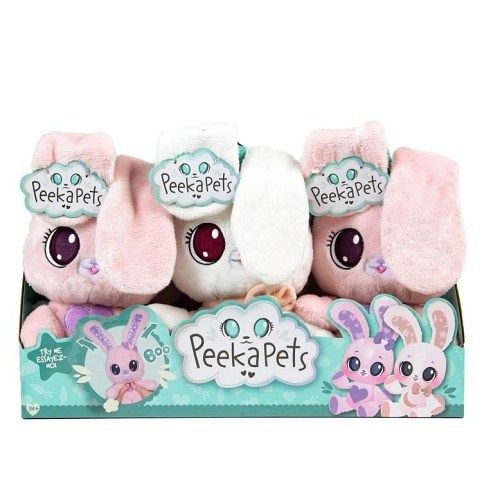 PeekaPets Bunnies jsou měkoučcí plyšoví zajíčci, kteří jsou vhodní pro nejmenší děti. Jsou vyrobeni z měkkých a kvalitních materiálů a jsou omyvatelní. Pokud zatlačíte na bříško, uši se sklopí přes oči. Jsou rozkošní a vaše děti je budou milovat! K dispozici ve dvou různých verzích.