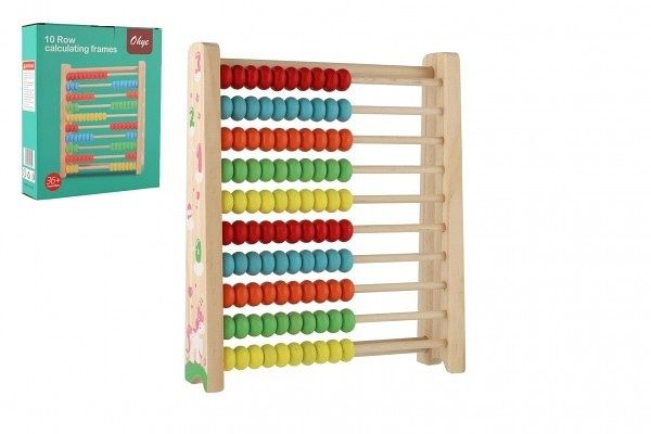 Klasické barevné počítadlo s dřevěnými kuličkami na dřevěném stojanu. Počítadlo podporuje logické myšlení a pomáhá při prvních početních úkolech.