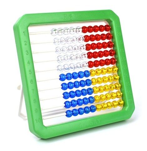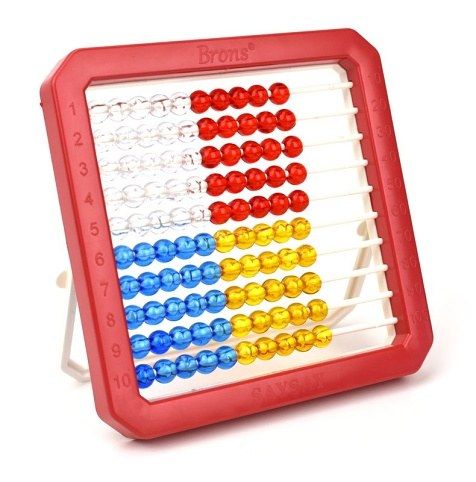 plastové klasické počítadlo s deseti řadami o deseti barevných kuličkách