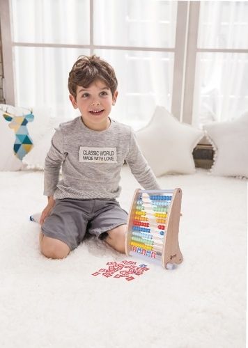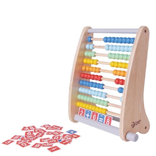 Klasické dřevěné počítadlo v přírodním provedení s 10ti barevnými kuličkami. Počítadlo podporuje logické myšlení a pomáhá při prvních početních úkolech. Později lze využít přiložené papírové kartičky s čísly a znaménky a zároveň se učit i anglicky.