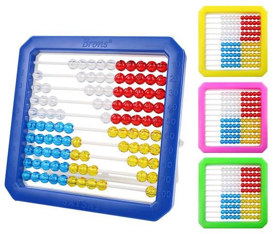 Plastové klasické počítadlo s deseti řadami o deseti barevných kuličkách- rozměr 15,5 x 15,5cm- mix barev