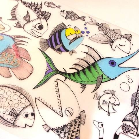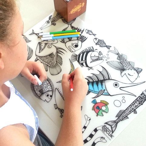 Podložka na kreslení FUNNY MAT - Piraně + pastelky zdarma
