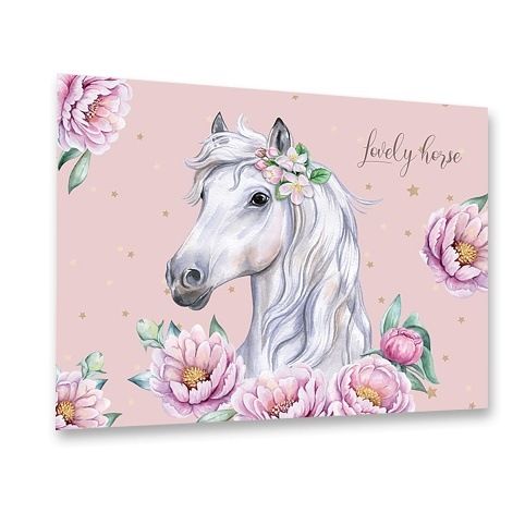 Podložka na stůl v moderním atraktivním designu s motivem romantického koně. Podložka chrání nábytek před poškozením, má omyvatelný povrch a je vyrobená z PVC. Její měkčené provedení zajišťuje komfortní užívání a psaní na podložce.