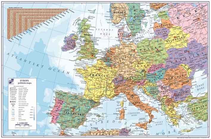 Podložka na stůl s mapou Evropy. Praktická podložka na psací stůl, která chrání nábytek proti poškození. Omyvatelný povrch, materiál PVC.