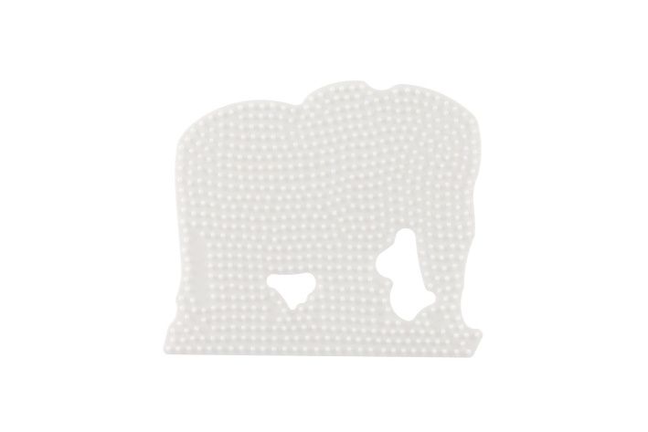 Pomůcka pro vytváření obrázků ze zažehlovacích korálků. Sada bílých plastových podložek obsahuje slona, žirafu, lva a velblouda.