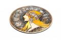 Podložka pod myš s motivem Alfonse Muchy. Průměr podložky je cca 22,5 cm, tloušťka cca 3 mm.
